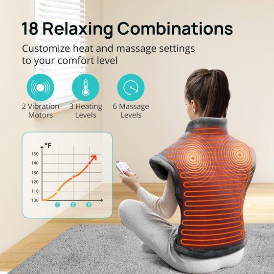 - 18 Customizable Combinations: The electric heating pad allows you to enjoy personalized thermotherapy while relaxing, working, or doing housework thanks to its 3 heating levels, 6 massage settings, and a 9ft long cable