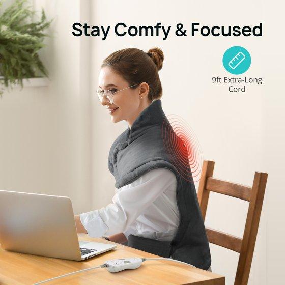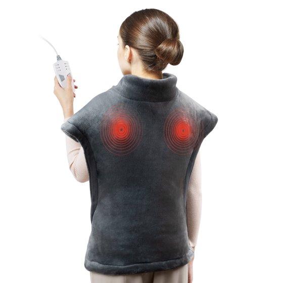 XL Size for Full Coverage: This 30" x 24" extra-large massager heating pad with 2 motors offers even heat and vibrating massaging that efficiently relieves muscular soreness, tension, and cramps in your neck, back, and shoulders