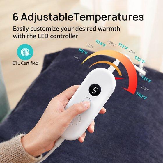 - 32"×25" Large Size Electric Heating Pad: This heating pad is designed to relieve the soreness of the neck, back, spine, waist and so on, of course it can also be used to keep warm. With 6-speed temperature adjustment and automatic shut-off function for 2 hours of continuous use, it will warm your body safely and comfortably.