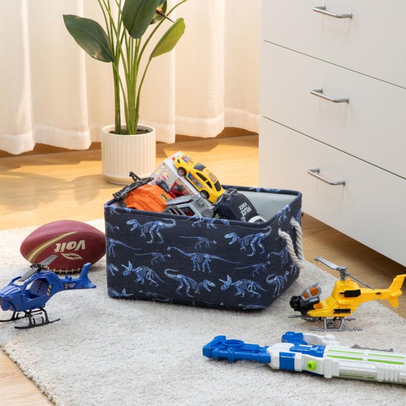 Your Zone Kids Dino Canvas Storage Basket with Handles, 15 in x 11 in x 7.8 in