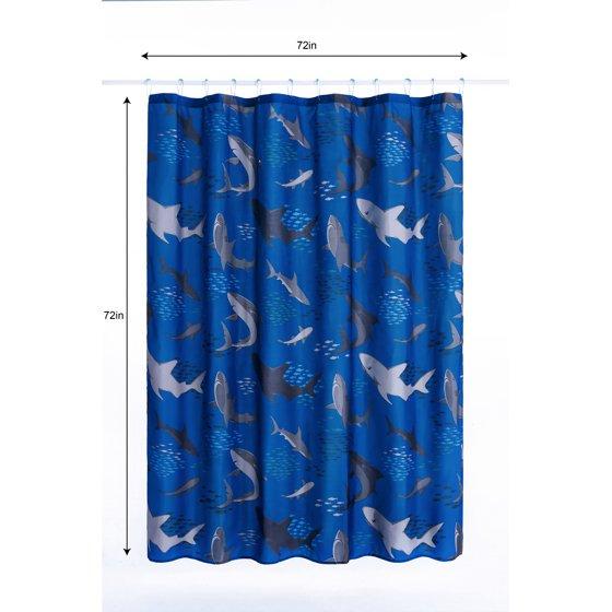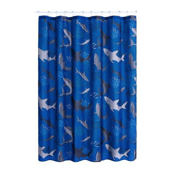 Your Zone Kids Navy Shark Shower Curtain with Hooks