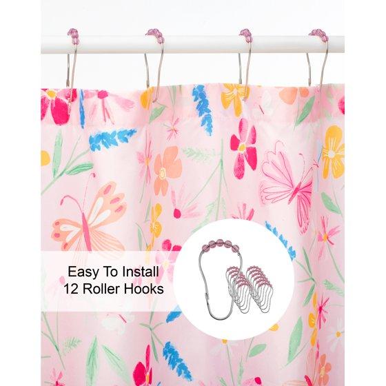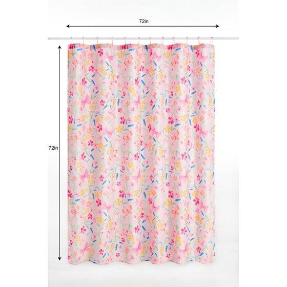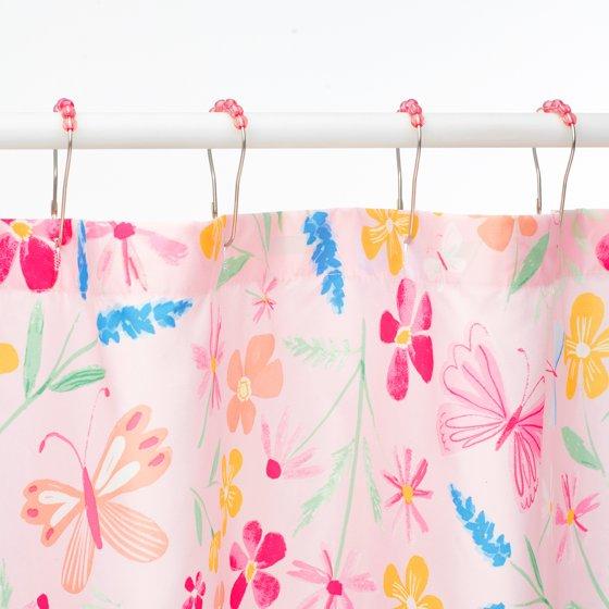 Your Zone Kids Pink Floral Shower Curtain with Hooks