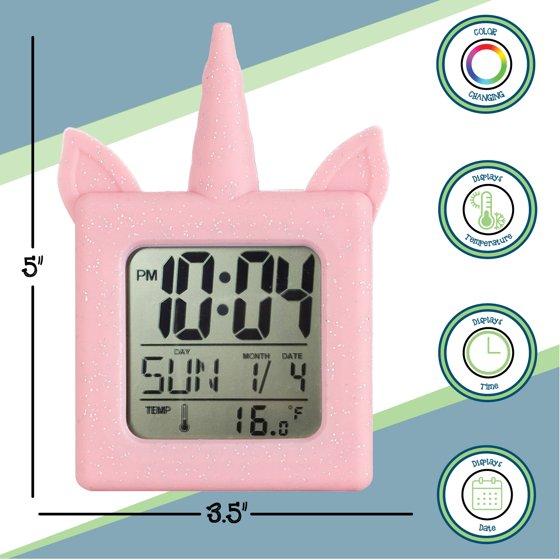 Your Zone LED Color Changing Glitter Pink Unicorn Alarm Clock
