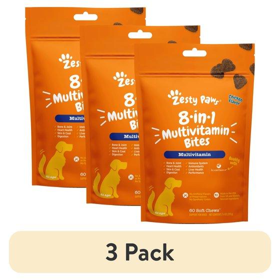 (3 pack) Zesty Paws 8-in-1 Multivitamin Bites for Dogs, for Overall Wellbeing, Chicken 60ct