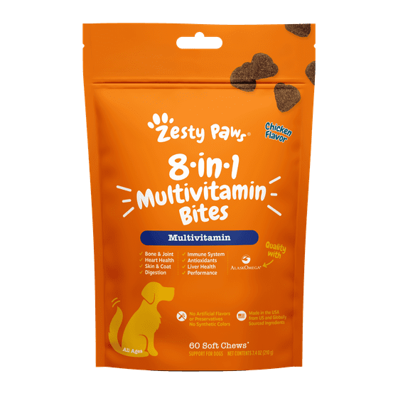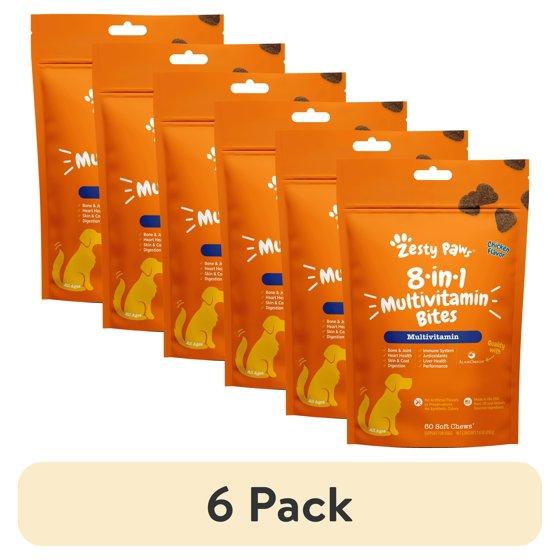 (6 pack) Zesty Paws 8-in-1 Multivitamin Bites for Dogs, for Overall Wellbeing, Chicken 60ct