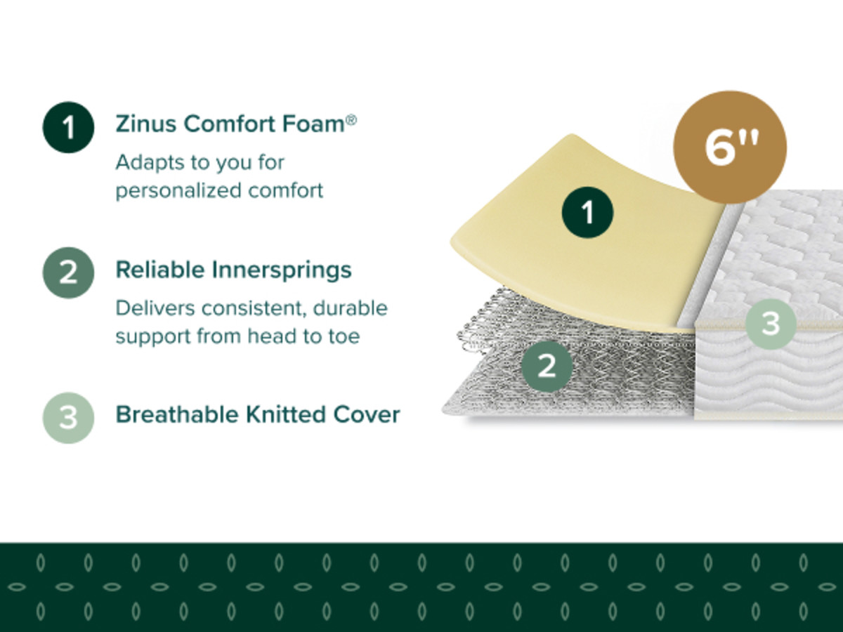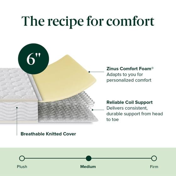 - Zinus 6” Basic Tight Top Innerspring Mattress, Full