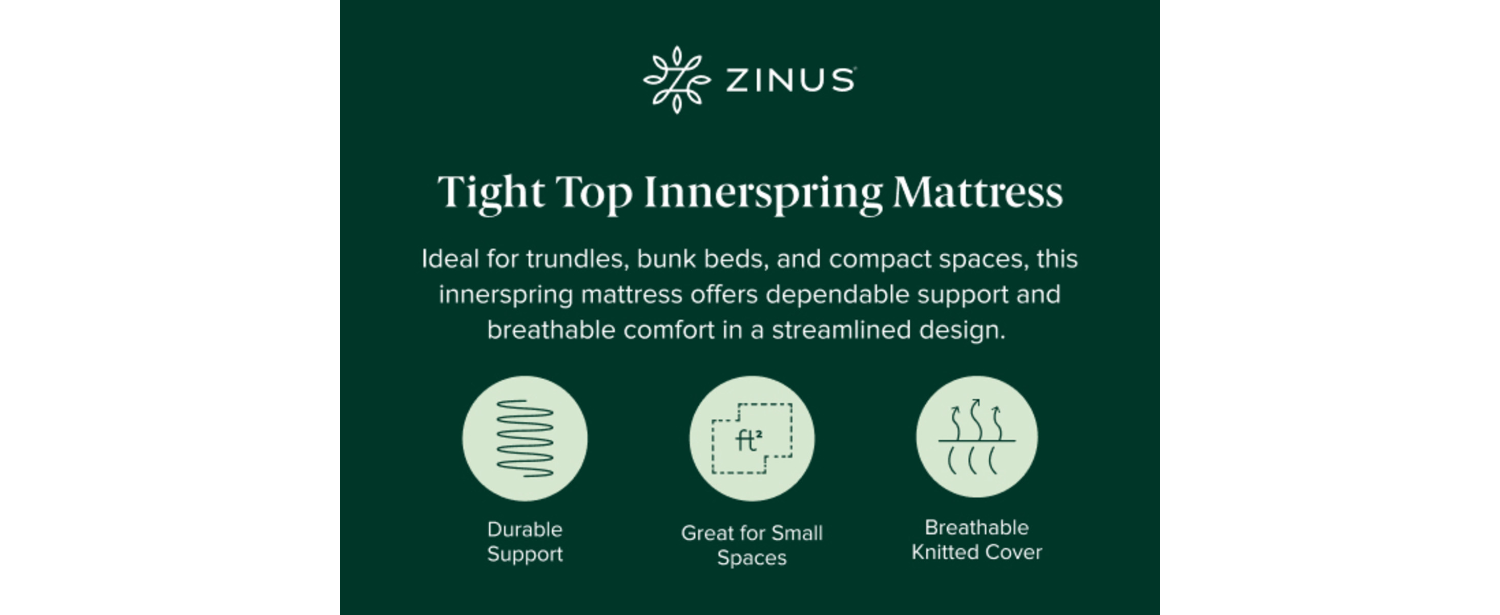 - 6” profile is great for bunk beds, trundles, daybeds, and tight spaces