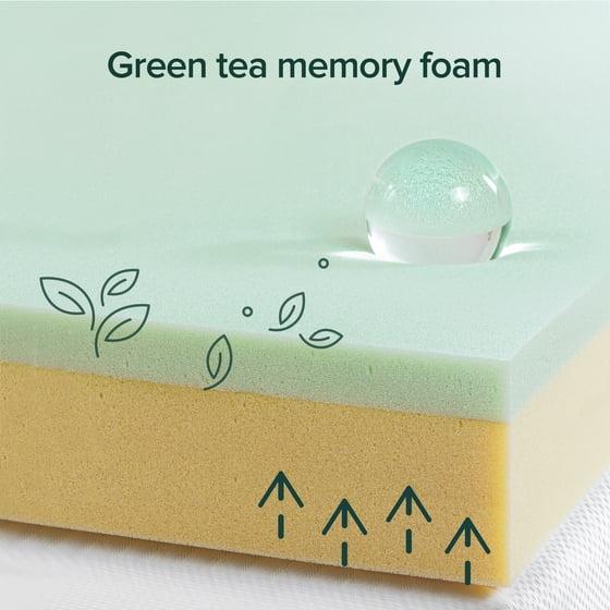 - Memory foam infused with green tea to enhance freshness