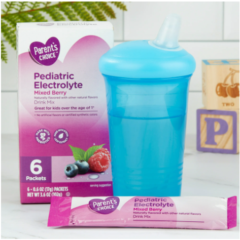 Parent's Choice Mixed Berry Pediatric Electrolyte Drink Mix is a convenient and delicious way to rehydrate your busy kids on the go. Our drink mix delivers electrolytes to replenish vital minerals and fluids and reduce dehydration caused by exercise, sickness, or heat exhaustion. This box includes 6 individual-sized packets that are perfect to take in a sports bag, backpack, or diaper bag for busy or active days. This formula includes probiotics for good digestive care and Stevia leaf extract that satisfies sweetness without the extra sugars found in juice boxes and sports beverages. Help your child replace essential fluids and minerals they need to thrive with Parent's Choice Mixed Berry Pediatric Electrolyte Drink Mix.