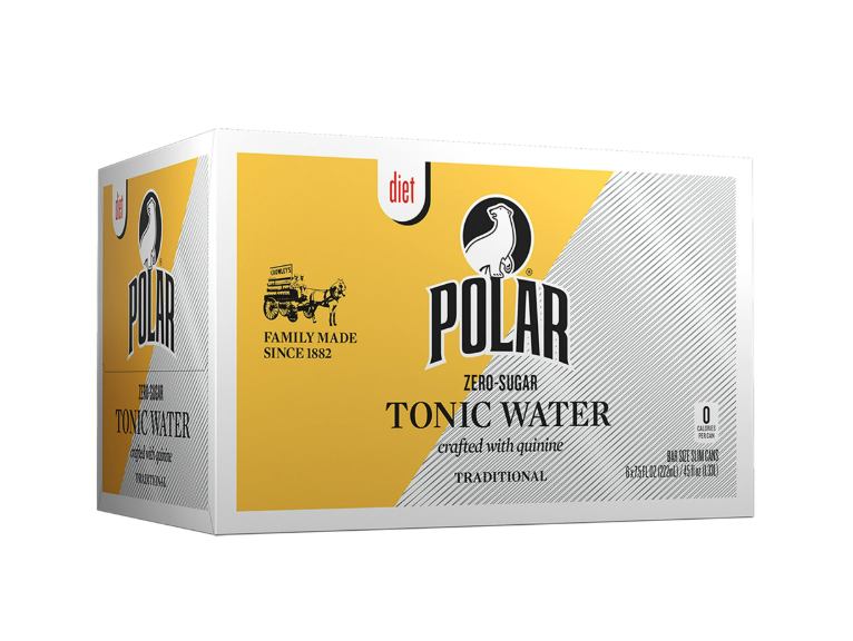 Polar Beverages Diet Tonic Water comes in a convenient 7.5 oz aluminum 6-pack cans! Delight in the guilt-free choice with zero calories and no added sugars. Our refreshing diet tonic water strikes the perfect balance of bitterness and sweetness, making it a fantastic mixer for cocktails or a standalone sparkling thirst-quencher. With its portable packaging, enjoy the effervescence of Polar Beverages Diet Tonic Water anywhere, anytime. Embrace the light and crisp taste while sipping your way to a satisfying refreshment. Caffeine free, container type: box.