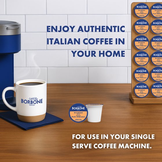 Caffè Borbone Breakfast Blend Coffee Capsules – Lively Arabica Coffee Pods Light Roast to Medium: Wake up with something truly Italian, Caffè Borbone’s Coffee Pods Breakfast Blend is a fresh, refined take on morning coffee, bringing together 100% premium Arabica light roast coffee beans and masterful Naples tradition. With notes of chestnut and caramel, this smooth, medium-light coffee breakfast blend delivers a bright, nutty aroma and a gentle flavor that’s both spirited and easy to love. Each single-serve pod is packed with carefully selected beans that have been sorted using optical technology and roasted to perfection, ensuring a cup that’s as refined as it is uplifting. Crafted for Your Morning Ritual This is the coffee pods light roast breakfast blend that says “Buongiorno!” with every sip, light on bitterness, rich in personality. These light medium roast coffee pods are designed to gently awaken the senses with its sparkling notes and smooth finish, making it perfect for slow mornings, early meetings, or peaceful sunrises. And with compatibility across most K-Cup brewers, enjoying café-style Italian coffee is easier than ever. Just insert, brew, and enjoy the “friccico”, that sparkling Italian feeling in your heart. Italian Roasting, Modern Living Caffè Borbone’s commitment to quality is evident in every detail, from the carefully sourced 100% Arabica coffee beans to the precision of its roast. Roasted and packed in Italy, each coffee pod reflects the brand’s deep connection to its Neapolitan roots, where coffee is more than a drink; it’s a moment of shared joy. With a smooth, light medium roast profile and approachable flavor, Caffè Borbone House Blend, is a versatile favorite for coffee lovers seeking authenticity, ease, and elegance in every sip.