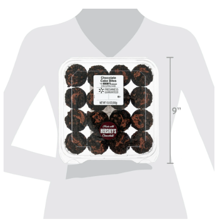 Freshness Guaranteed Chocolate Cake Bites deliver a superb flavor right to you in the form of a nifty bite-sized snack. Each of the mini chocolate treats contains a rich batter made with Hershey's chocolate, and are topped with a delicious chocolate crumb streusel. This pack of 16 little treats pairs perfectly with a hot cappuccino as a sweet and delicious way to start your day, or pair them with a cold glass of milk to have as your go-to snack in the evening. Share something mouth-watering with your friends or your whole family with the Freshness Guaranteed Chocolate Cake Bites.