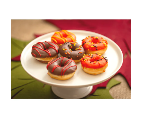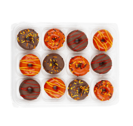 Freshness Guaranteed Fall Chocolate and Vanilla Iced Mini Donuts bring festive flavors and colors to your seasonal celebrations. This tray features 12 soft and chewy mini donuts coated in rich chocolate or sweet vanilla icing, decorated with fall-inspired sprinkles and colorful drizzles in shades of orange, yellow, and red. Perfect for parties, classroom treats, or afternoon snacks, these donuts add a fun and flavorful touch to any gathering. Pair them with coffee, milk, or hot cocoa for a cozy treat that everyone will enjoy. Make your dessert board or holiday spread complete with Freshness Guaranteed Fall Chocolate and Vanilla Iced Mini Donuts.