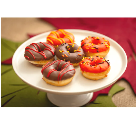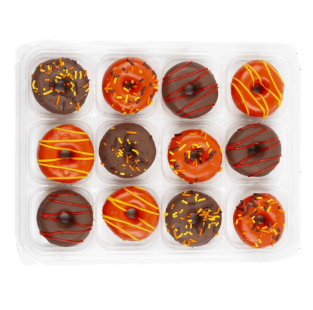 Freshness Guaranteed Fall Chocolate and Vanilla Iced Mini Donuts bring festive flavors and colors to your seasonal celebrations. This tray features 12 soft and chewy mini donuts coated in rich chocolate or sweet vanilla icing, decorated with fall-inspired sprinkles and colorful drizzles in shades of orange, yellow, and red. Perfect for parties, classroom treats, or afternoon snacks, these donuts add a fun and flavorful touch to any gathering. Pair them with coffee, milk, or hot cocoa for a cozy treat that everyone will enjoy. Make your dessert board or holiday spread complete with Freshness Guaranteed Fall Chocolate and Vanilla Iced Mini Donuts.