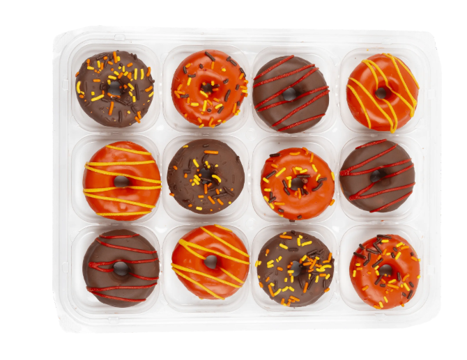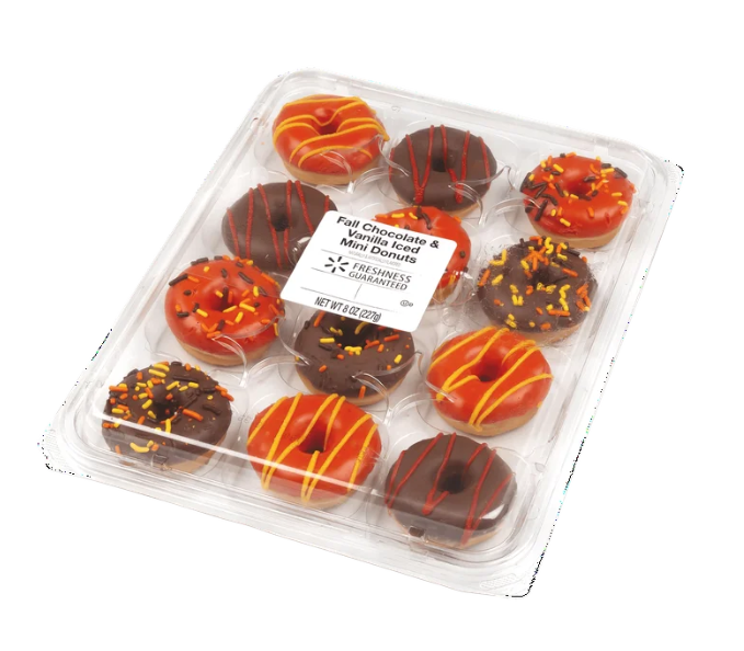 Freshness Guaranteed Fall Chocolate and Vanilla Iced Mini Donuts bring festive flavors and colors to your seasonal celebrations. This tray features 12 soft and chewy mini donuts coated in rich chocolate or sweet vanilla icing, decorated with fall-inspired sprinkles and colorful drizzles in shades of orange, yellow, and red. Perfect for parties, classroom treats, or afternoon snacks, these donuts add a fun and flavorful touch to any gathering. Pair them with coffee, milk, or hot cocoa for a cozy treat that everyone will enjoy. Make your dessert board or holiday spread complete with Freshness Guaranteed Fall Chocolate and Vanilla Iced Mini Donuts.