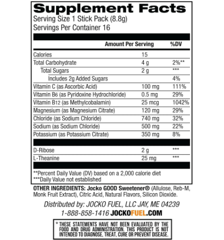 Stay fueled and refreshed with Jocko Fuel Hydrate Electrolytes Powder Packets – your ultimate hydration amplifier for recovery, dehydration, and exercise. Formulated with a powerful blend of electrolytes and essential vitamins like B6, B12, and C, this low-sugar hydration mix is designed to support energy levels, boost immune function, and help your body recover faster. Each convenient packet is easy to mix with water and delivers a delicious Island Orange flavor with no junk, no artificial sweeteners, and no crash. Whether you're pushing through a tough workout or just need a hydration boost, Jocko Hydrate has your back. Includes 16 single-serve packets – perfect for on-the-go hydration.