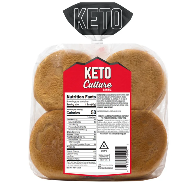 Keto Culture Baking® wants you to be able to live the low-carb life and still enjoy the food you eat. Whether it’s a BLT for lunch or a grilled cheese for dinner, Keto Culture Baking® gives you the canvas for a tasty meal. Keto Culture Buns are friendly for both Keto and Low Carb lifestyles. At a serving size of 1 bun (43 g) it contains 50 calories, 0 mg cholesterol, 0 g trans fats, 0 g sugar and 6 g protein! Each bun has 17 g of carbohydrates and 16 g of dietary fiber (3 g soluble and 13 g insoluble). Keto Culture is proudly baked by Franz Bakery. Franz is a fourth-generation family-owned bakery based in the Northwest. Since 1906, we have been providing communities with delicious baked bread, buns, muffins, bagels, rolls, cookies and pastries. We value the communities we serve and are committed to creating quality baked goods for your home. With over 100 years of baking experience, we have a great selection of items to choose from including many that are free from high fructose corn syrup, artificial colors, and artificial flavors.
