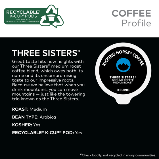 Kicking Horse Coffee, Three Sisters, Single Serve Keurig K-Cup Pods, Medium Roast Coffee, 60-Count Box