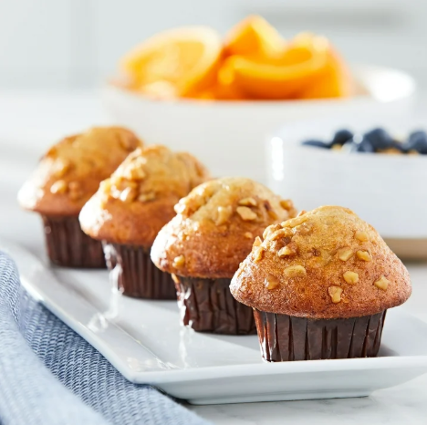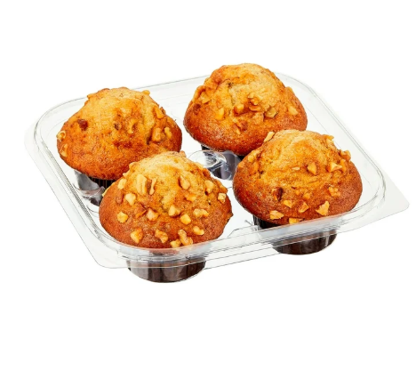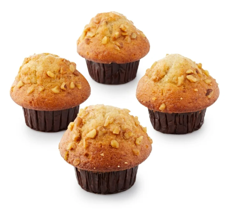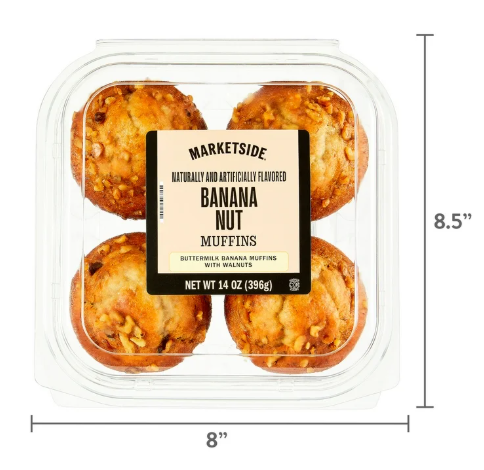 Marketside Banana Nut Muffins are a great any-time sweet treat that quickly satisfies your sweet-tooth craving. These exquisite muffins are moist, soft, and loaded with real banana and topped with crunchy walnuts for a pop of flavor in every bite. Try these muffins for breakfast with a hot cup of coffee or tea, as a sweet snack with a tall, cold glass of milk, or as a scrumptious dessert after dinner. Conveniently packaged with four regular-sized muffins per pack in a resealable container that maintains freshness, these muffins are perfect to share with friends and family or save and savor by yourself.