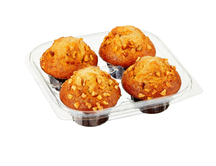 4 regular-sized muffins packaged in resealable clamshell