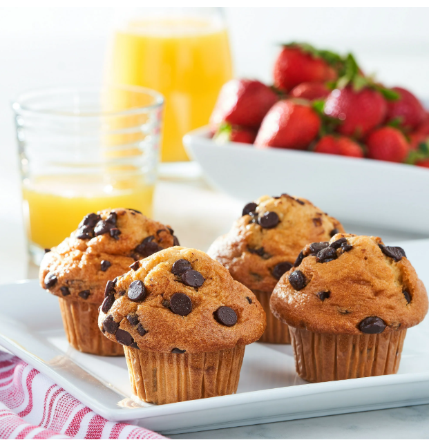 Marketside Chocolate Chip Muffins are a great any-time sweet treat that quickly satisfies your sweet-tooth craving. These exquisite muffins are moist and soft and loaded with semisweet chocolate chips for a pop of decadent chocolate flavor in every bite. Try these Marketside Chocolate chip muffins for breakfast with a hot cup of coffee or tea, as a sweet snack with a tall, cold glass of milk, or as a scrumptious dessert after dinner. Conveniently packaged with four regular-sized muffins per pack in a resealable container, these muffins are perfect to share with friends and family or savor by yourself.