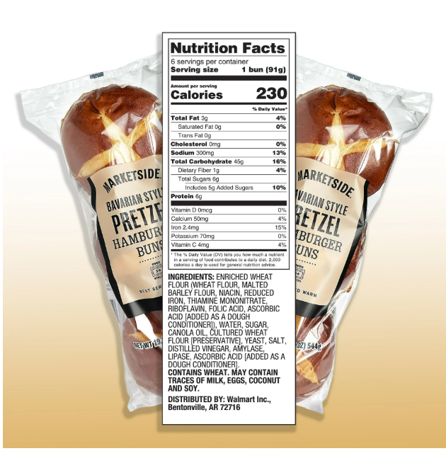 Discover the delicious taste and texture of Marketside Pretzel Buns. These buns are crafted with care, offering a soft, chewy interior and a perfectly golden, salty crust that captures the authentic flavor of classic pretzels. Perfect for elevating your sandwiches, burgers, or sliders, Marketside Pretzel Buns add a gourmet twist to any meal. Whether you're hosting a barbecue, preparing lunch, or looking for a unique bread option, these buns are sure to impress. Conveniently packaged for freshness, they are ready to be enjoyed straight from the bag or lightly warmed for an extra touch of warmth and softness. For the best experience, serve them warm by popping them in the oven at 350°F for 3-5 minutes. Enhance your dining experience with the rich, savory taste of Marketside Pretzel Buns and make every bite memorable.