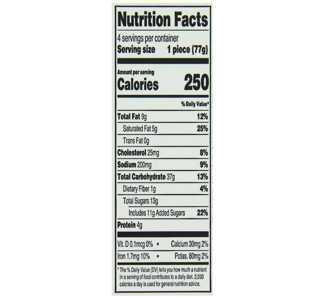 Enriched Flour (Wheat Flour, Malted Barley Flour, Niacin, Reduced Iron, Thiamine Mononitrate, Riboflavin, Folic Acid), Water, Sugar, Apples (Prepared with Sodium Sulfite, Calcium Chloride), Butter (Cream, Natural Flavors), Contains Less Than 2% Of Yeast, Nonfat Milk, Salt, Corn Syrup, Modified Corn Starch, Mono- and Diglycerides, Lemon Juice, Citric Acid, Cinnamon, Potassium Sorbate (Preservative), Gellan Gum, Nutmeg, Vital Wheat Gluten, Xanthan Gum, Enzymes, Calcium Carbonate, Malted Wheat Flour, Whey Solids, Enzyme Modified Butter, Ascorbic Acid, Maltodextrin, Dehydrated Butter, Guar Gum, Annatto (Color), Turmeric (Color).