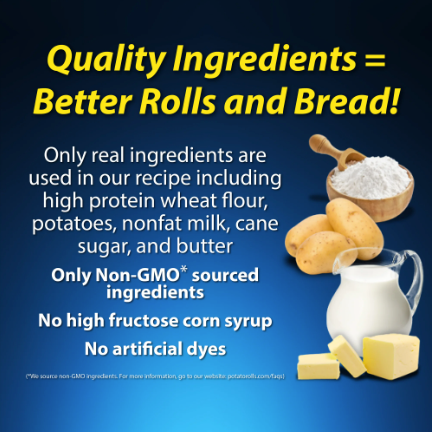 - Made with high quality ingredients such as high protein wheat flour, nonfat milk, potatoes, real cane sugar, yeast, and real butter. Better ingredients make better bread! Learn more at www.potatorolls.com