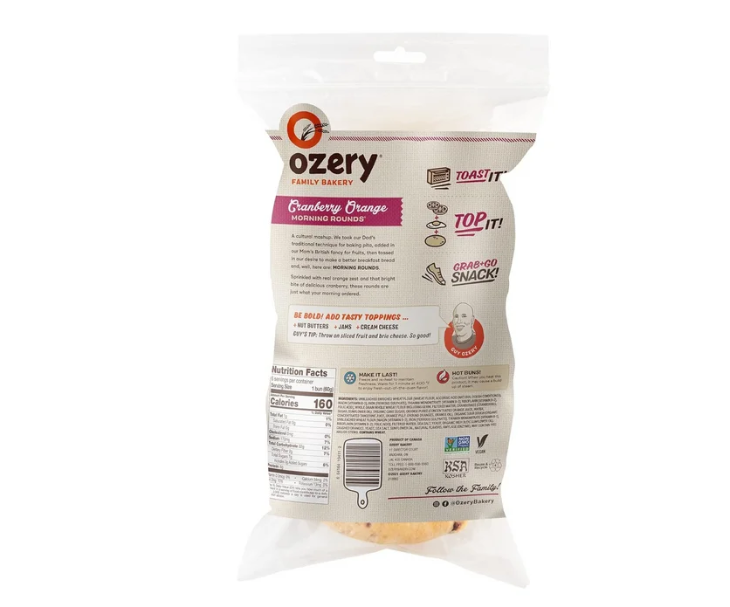 Delicious Morning Rounds are better than plain English Muffins, made with real fruit and whole grains. Wake up your taste buds with a burst of bright cranberries and fresh orange zest with Ozery Bakery Cranberry Orange Morning Rounds. These toastable, portable breakfast buns are packed with non-GMO ingredients like real fruit and a nutritious seed and whole grain mix to provide wholesome fuel for the busy day ahead. Eat them as it or toast them & add your favorite toppings like yogurt, berries or jam. Great ingredients are the foundation of great flavors so we spend a lot of time getting the flavors just right. Every single ingredient is handpicked & taste-tested by our team. Everything we make is free of artificial preservatives, colors and flavors because real food just tastes better. Vegan, Certified Kosher, GMO-free with no artificial preservatives, colors or flavors. Made in a Certified Peanut-Free Facility & Free from Sesame & other major allergens. Package contains 6 buns/12.7 oz.