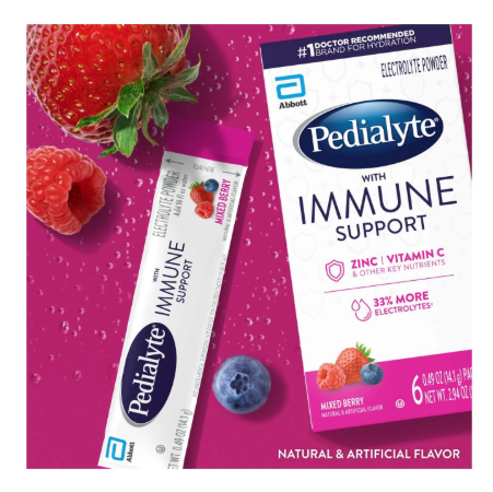 Pedialyte with Immune Support, Electrolyte Drink Powder, Mixed Berry | 6 Powder Packets