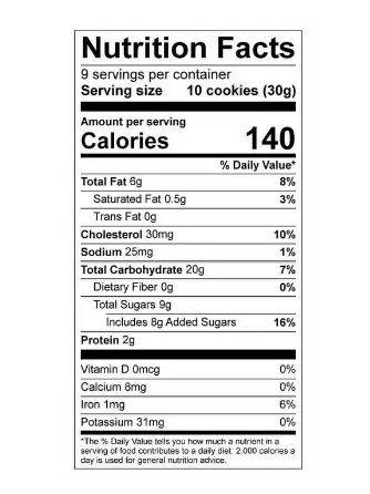 | Serving Size: | 10 cookies (30g) |