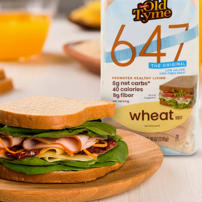 Schmidt Old Tyme 647 Wheat Bread is crafted for those who want wholesome nutrition without sacrificing taste. Each serving contains only 40 calories and 6g net carbs, making it perfect for low-carb and keto-friendly diets. With 8g of fiber per slice, it supports digestive health and helps you feel full. The soft, tender crumb and slightly chewy texture make it great for sandwiches or toast. Its naturally sweet, comforting flavor comes without artificial additives. The 18oz loaf is sealed in a clear bag to ensure freshness and displays nutritional info and a keto-friendly label. Enjoy classic wheat bread taste and balanced nutrition in every bite with 647 Wheat Bread.