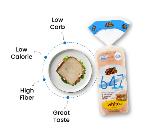 6g net carbs Schmidt Old Tyme 647 White Bread. It's white done right and it's mom's first choice. Schmidt Old Tyme 647 White Bread. Baked fresh every day. Backed by a one hundred twenty-five year legacy of delicious memories and good times. Blessed by Mother Nature and moms everywhere who value nutrition and great taste in a white bread. Schmidt Old Tyme 647 White Bread has 7 grams of fiber, essential for good health. Yet moms also love it for what it doesn't have only 40 calories and 6 grams of net carbohydrates per serving. And of course, the freshness and quality are baked right in, making our white bread a scrumptious delight the entire family will crave. It's white bread the way white bread should be.