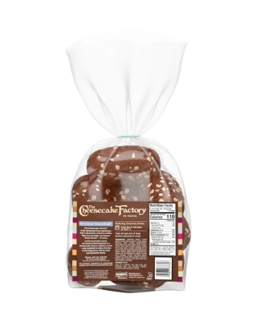 The Cheesecake Factory’s Famous “Brown Bread” is now available to enjoy at home! Savor the signature taste of this deliciously sweet wheat bread topped with oats. Enjoy dinner rolls alongside your favorite meal, make mini sandwiches, or eat them straight out of the bag!
