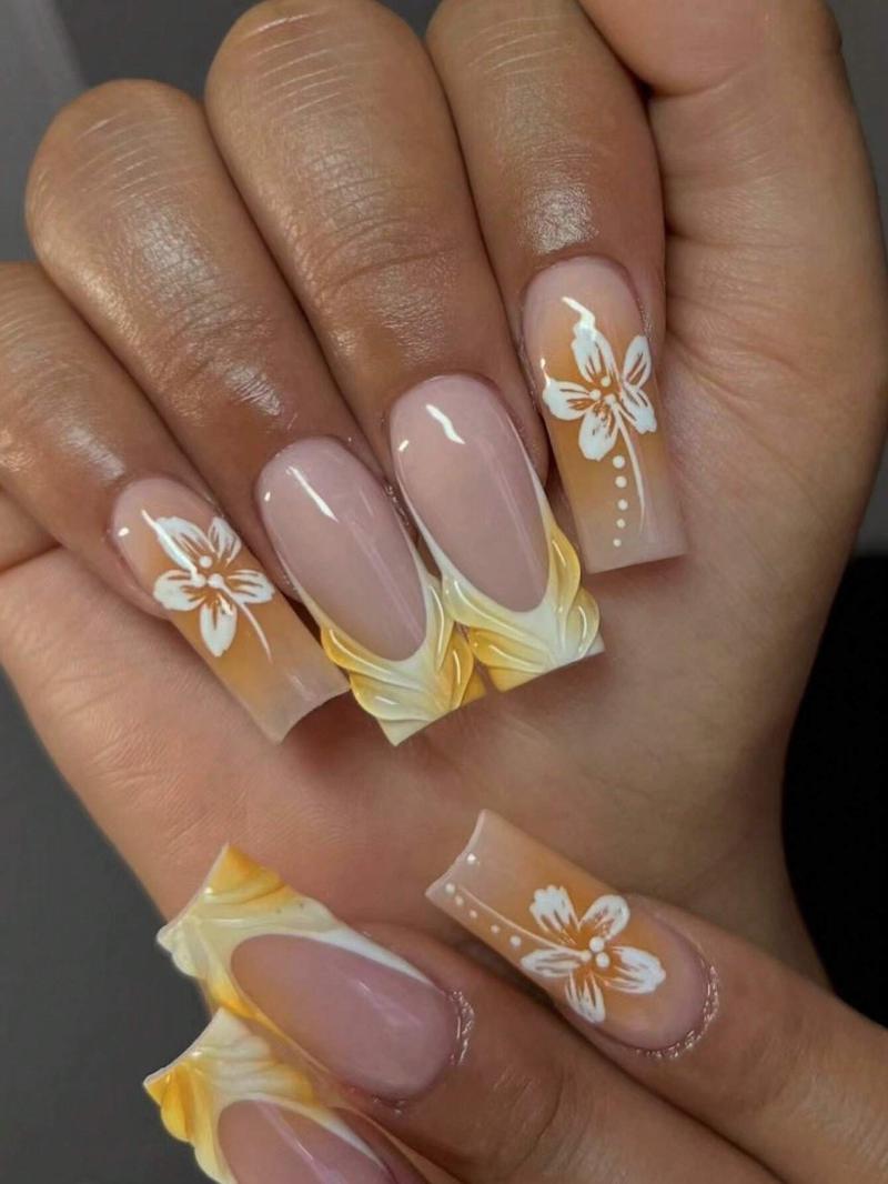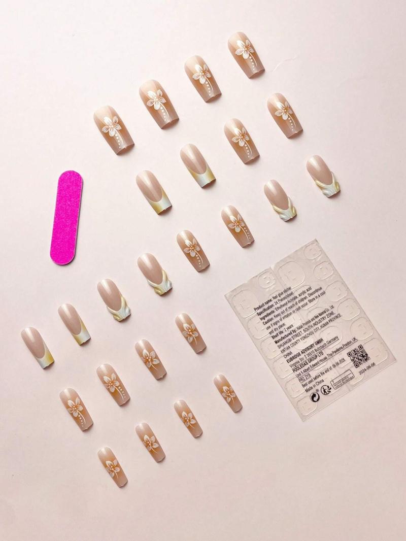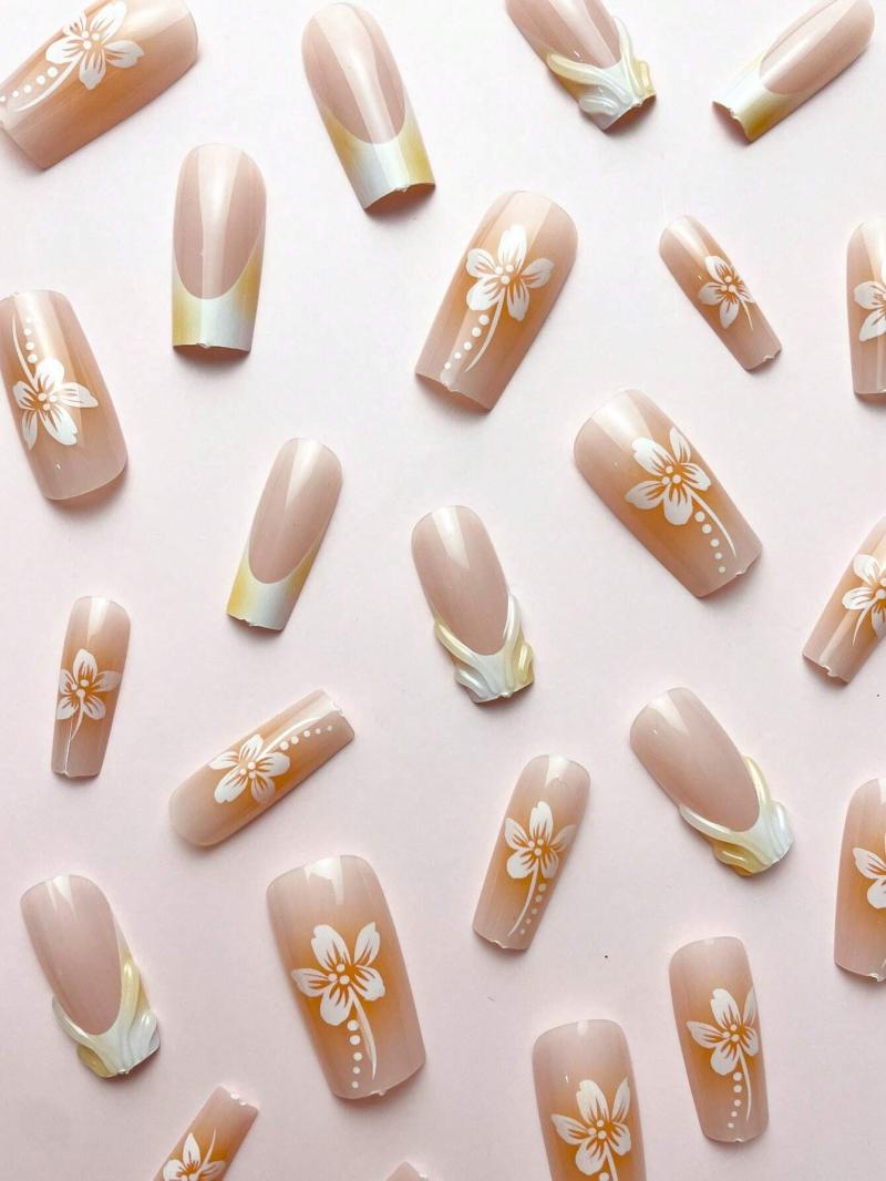 Product Note: 24Pcs/Set Simple French Medium Oval Shaped Yellow Cute Floral 3D Romantic Press-On Reusable False Nail Tips With Nail Glue And 1Pc Nail File, Suitable For Office Ladies, Casual Dates, Afternoon Tea And Outdoor Activities Press On Nails Nail Supplies Nails