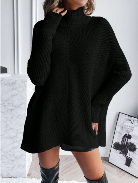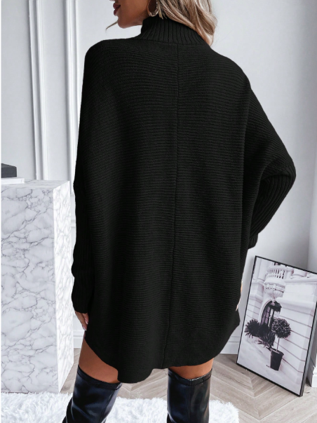 Minimalist Loose Solid Color Batwing Sleeve Turtleneck Sweater, Suitable For Autumn/Winter