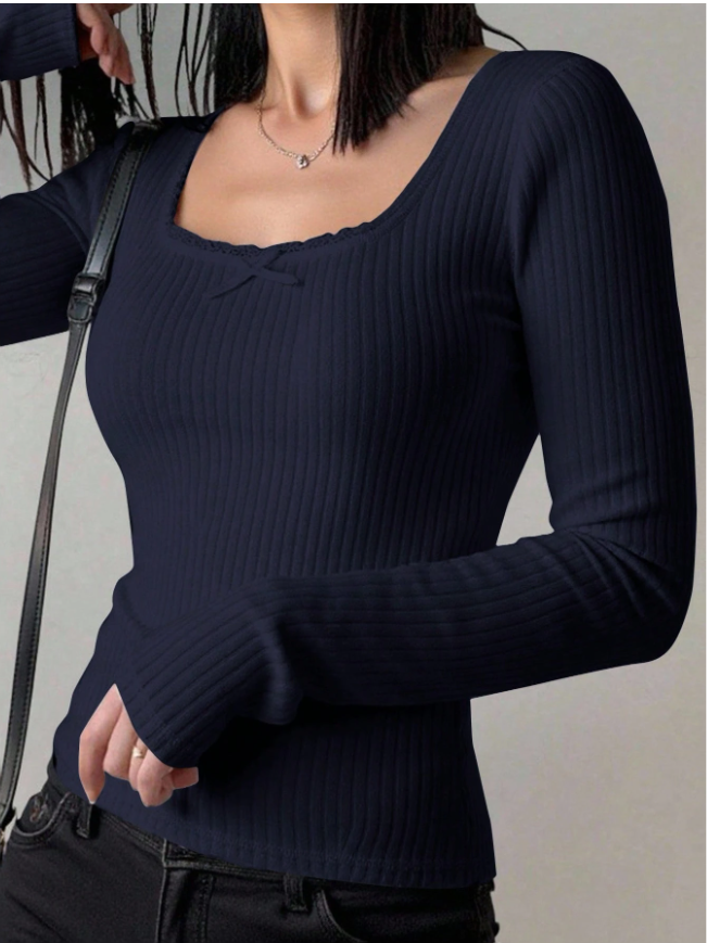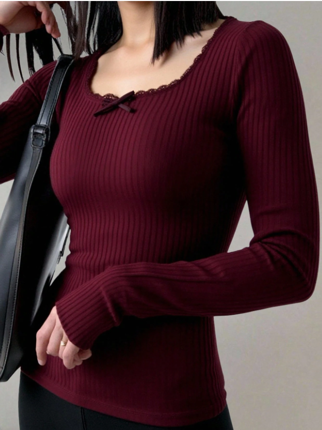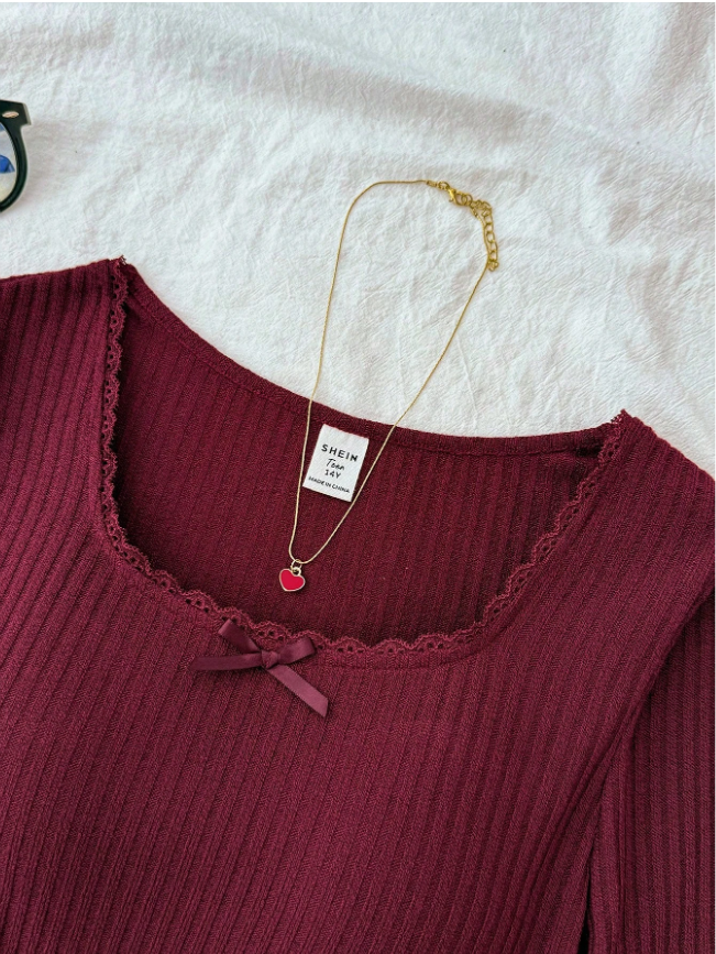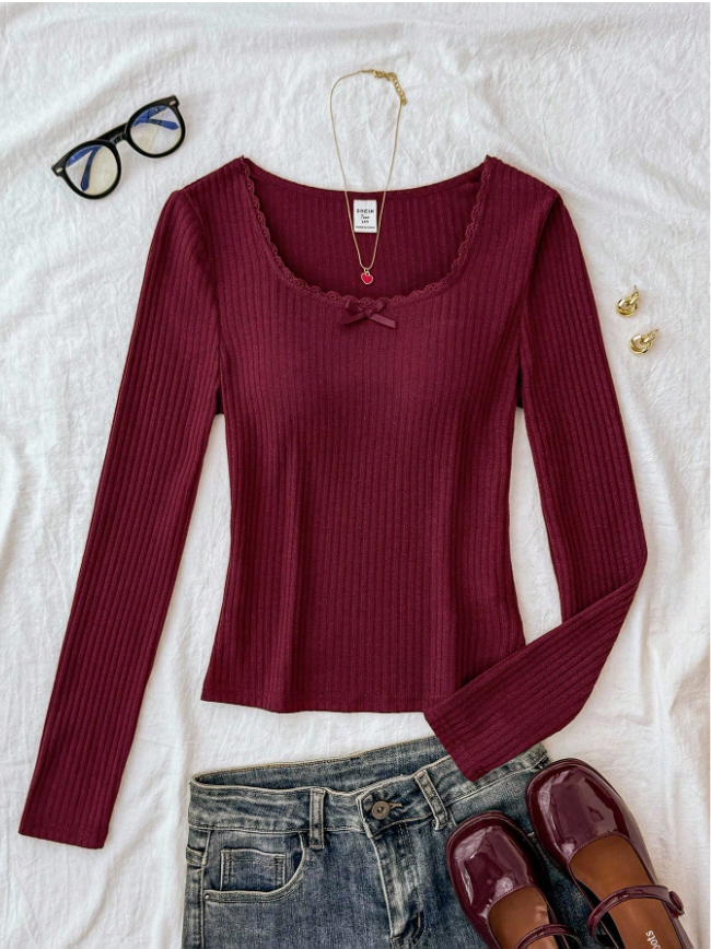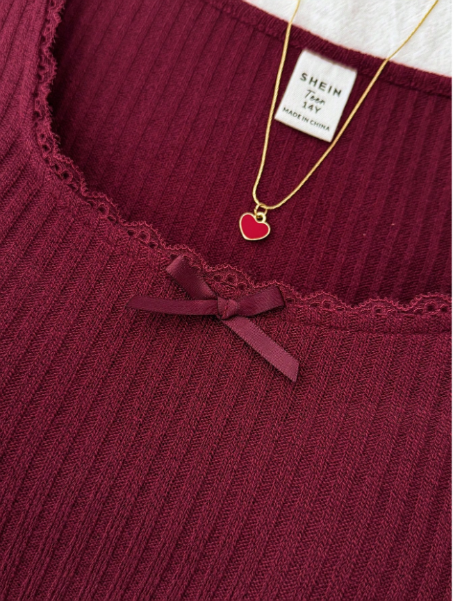 Product Note: This teen girls’ all-match casual versatile solid white knit T-shirt top features a charming lace bow detail and a loose round-neck long-sleeve design, making it a perfect choice for back-to-school outfits and cute fall–winter styling.