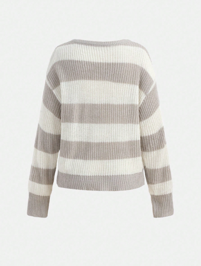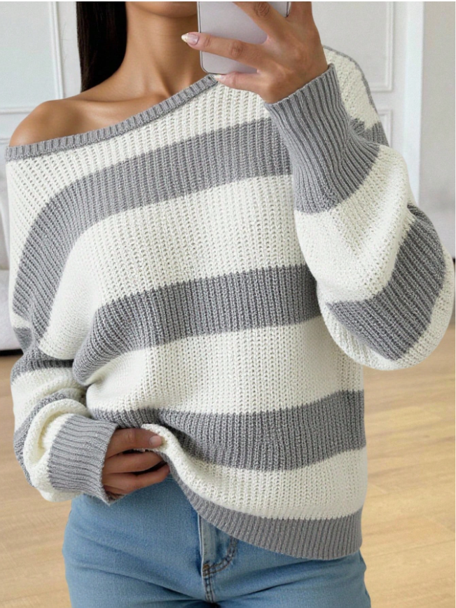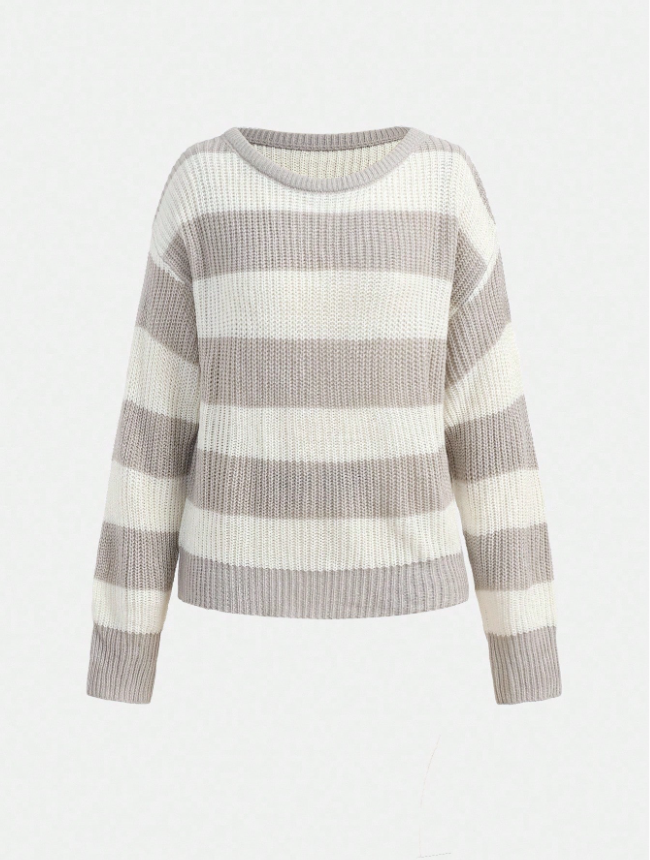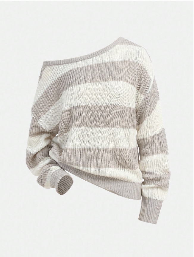Teen Girls Casual Striped Knit Sweater, Minimalist & Fashionable, Suitable For Everyday Wear, Autumn/Winter Cute Tops Cropped Sweater Sweater Off Shoulder Top Striped Sweater