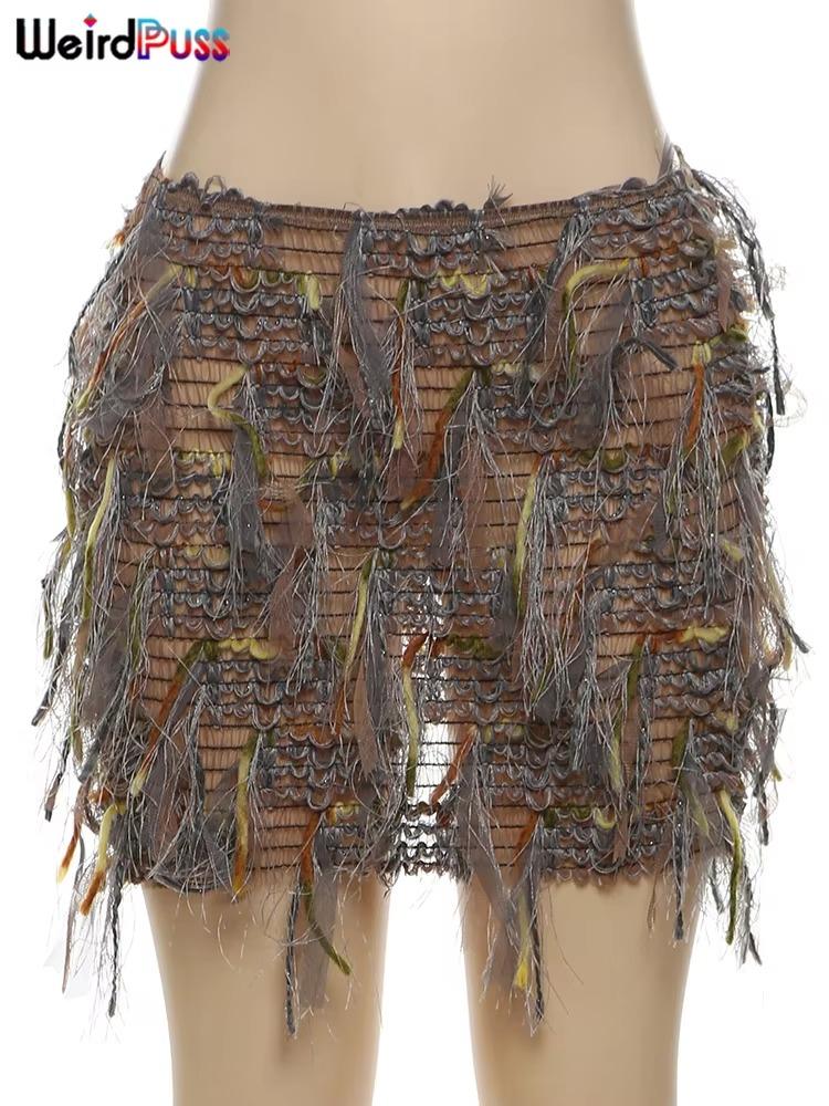 Weird Puss Colorful Tassel Skirts Peach Hip Women Thin Knit Wild Sexy Midnight Summer Trend Stretch Skinny Streetwear Bodycon