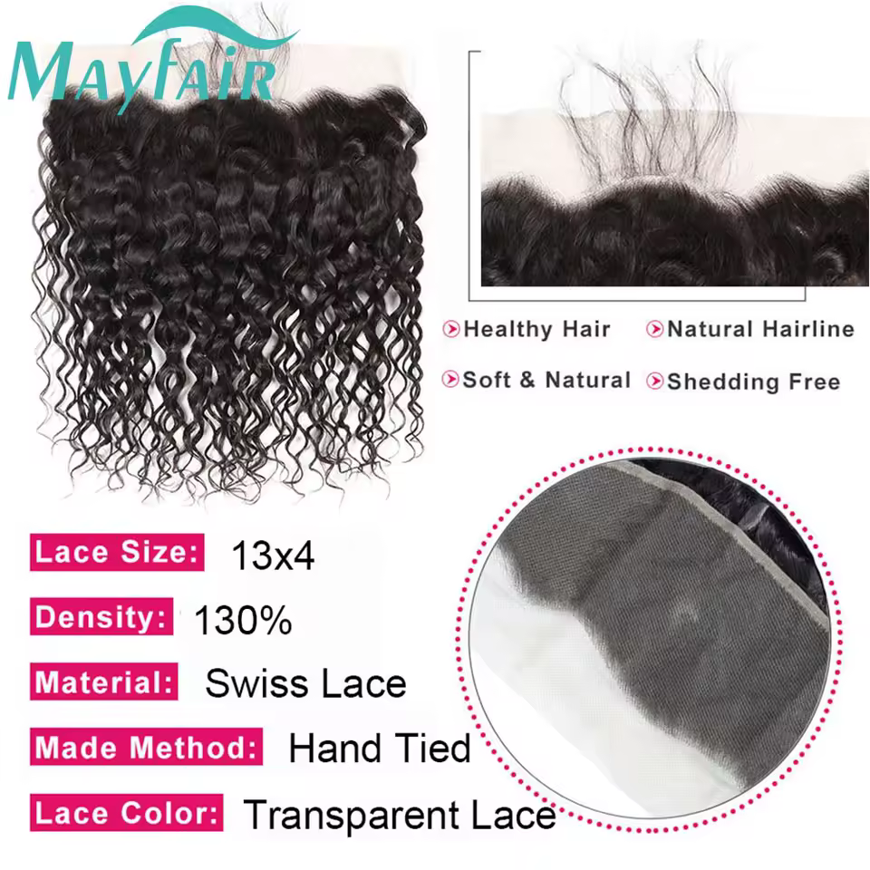 12A Lace HD Transparent Frontal 13x4 Water Wave 4X4 Closure Human Hair Brazilian Loose Closure Deep Water Kinky Curly Straight