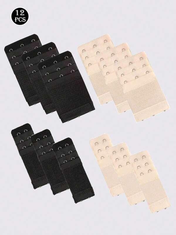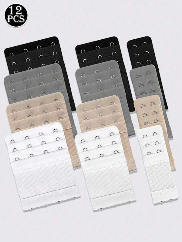12pcs Bra Extender Strap With Elastic, Adjustable And Comfortable, With 2/3/4 Hooks