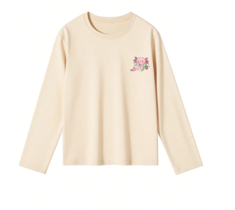Product Note: This Tween Girls’ Casual Salamander Print Long Sleeve T-Shirt is a fun, stylish, and comfortable essential designed for young students and teenagers during the spring and autumn seasons. Made from soft, breathable, and skin-friendly fabric, it provides just the right amount of warmth while ensuring all-day comfort for school, casual outings, or weekend activities.