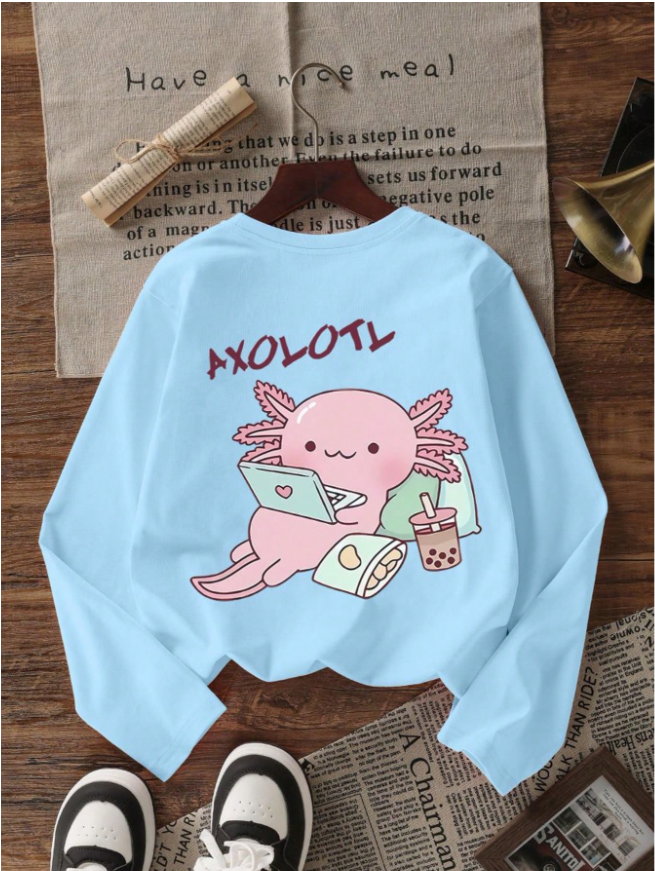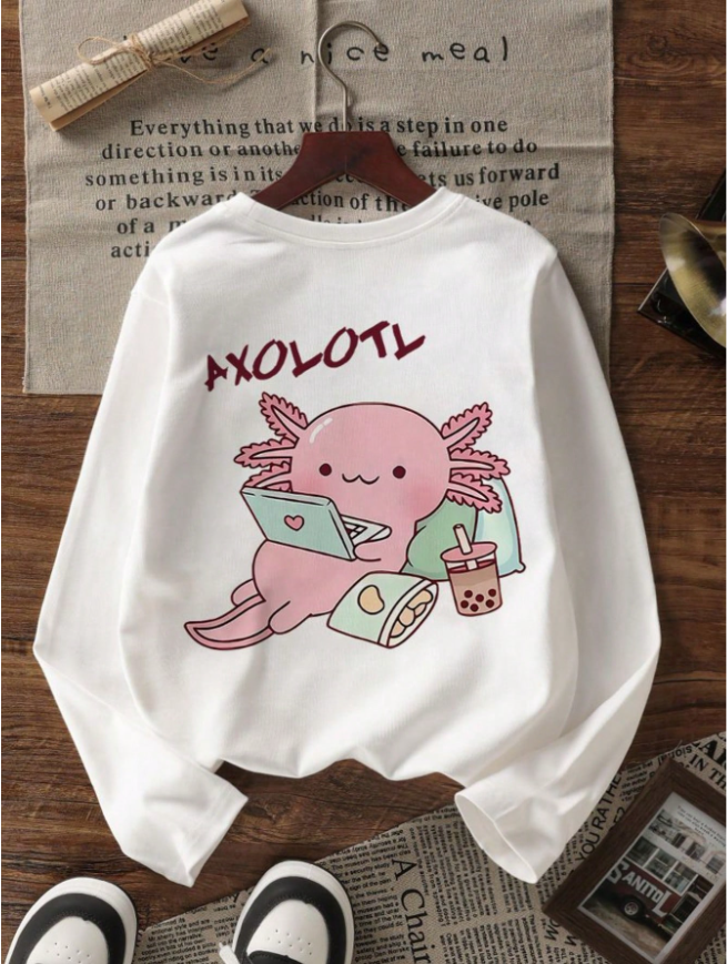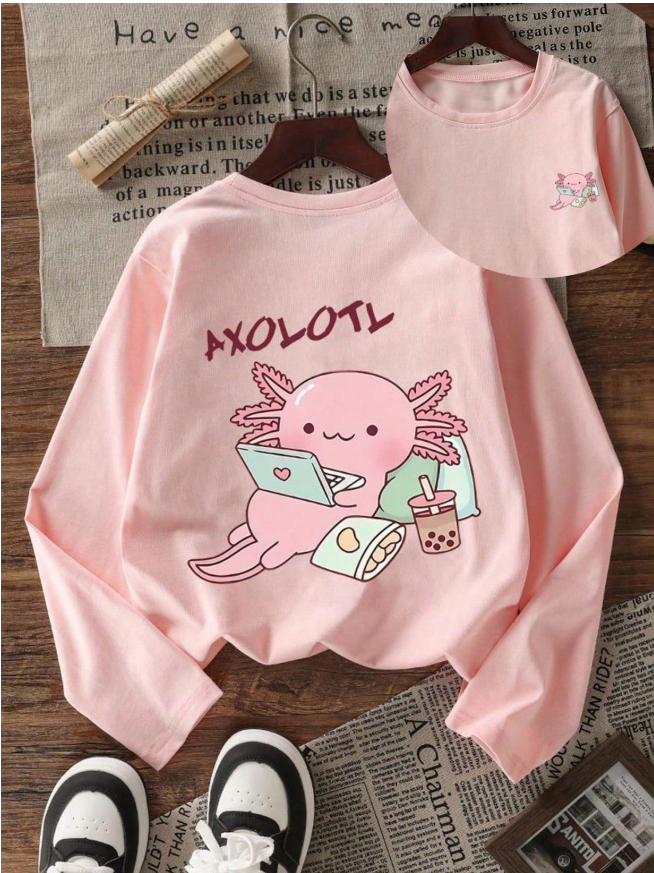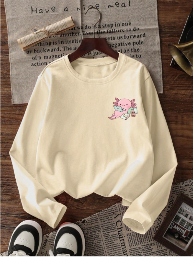 1pc Tween Girls' Casual Salamander Print Long Sleeve T-Shirt, Spring/Autumn, Fashionable, Warm And Comfortable Design For Young Students And Teenagers