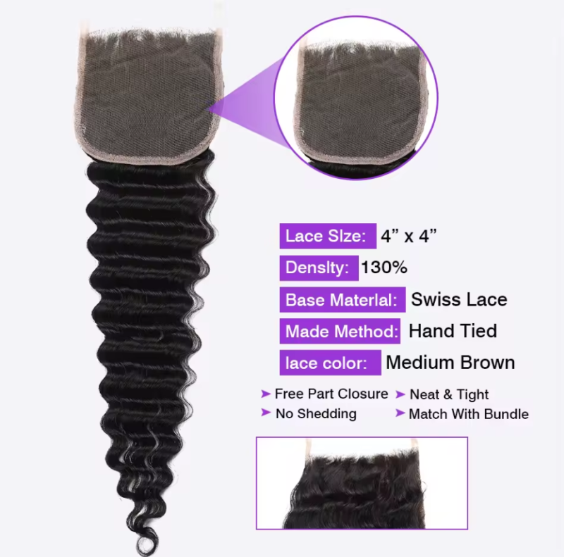 Product Note: 20 22inch Deep Wave 13x4 Lace Frontal Only Transparent 100% Human Remy Hair 4x4 5x5 Lace Closures Only closure cheveux humain