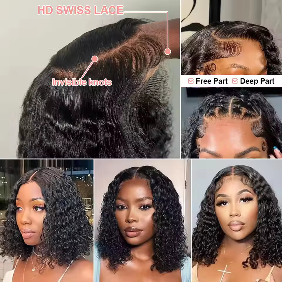 Product Note: This deep wave lace wig is crafted from 100% human hair with 250% density, delivering a naturally full and bouncy curly look. Designed with HD lace in 13x6, 13x4, and 7x5 glueless options, it offers versatile parting styles and quick wear without glue. The short bob cut adds a trendy, low-maintenance option, while the pre-plucked hairline ensures a seamless and realistic finish. Soft, durable, and easy to style, this wig is perfect for women who want both everyday convenience and a glamorous curly hairstyle.