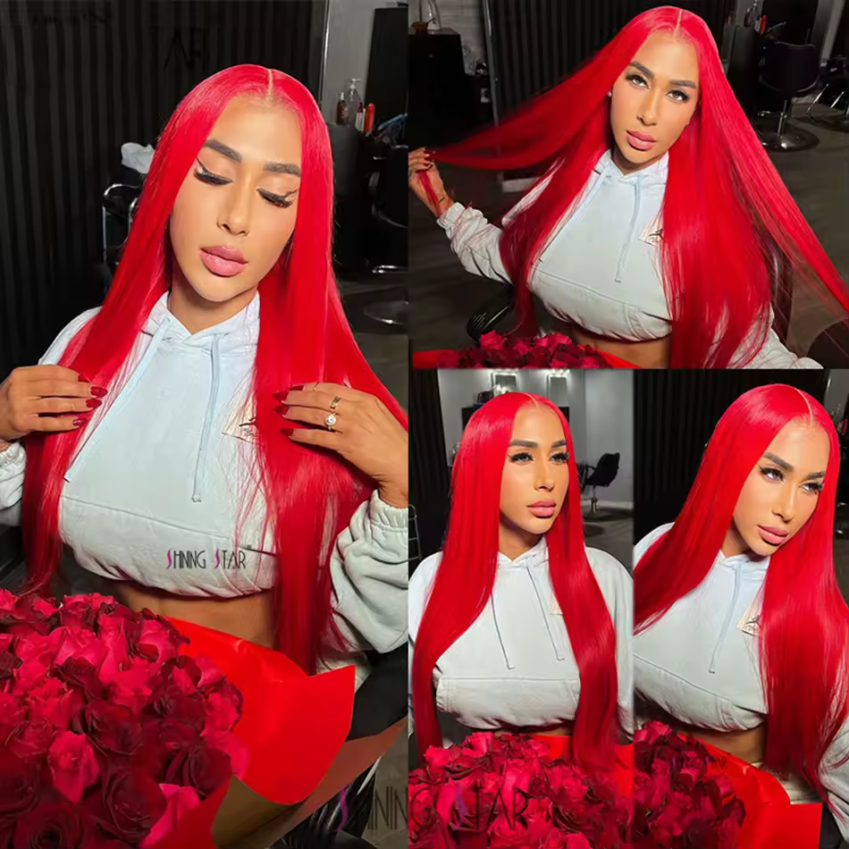 Product Note: Vibrant hot red straight lace frontal wig made from 100% human hair. Available in 30, 36, and 40 inches with 13x4,
