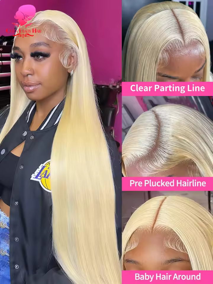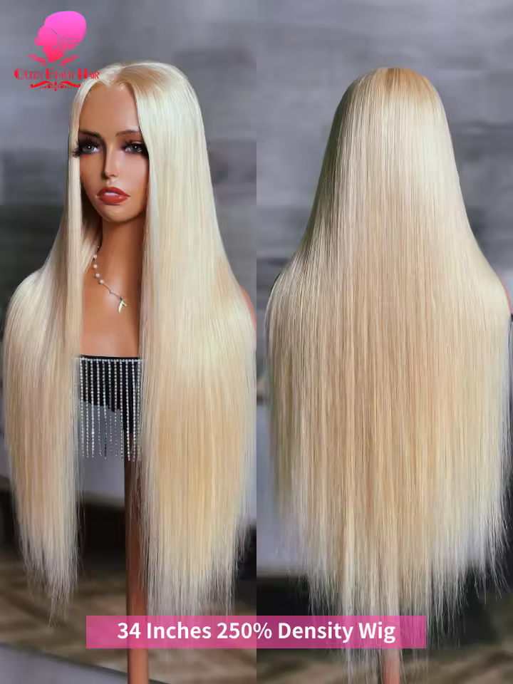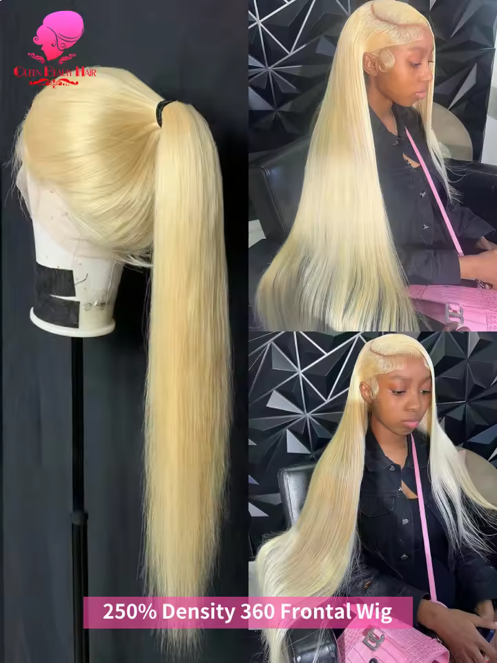 Product Note: This 38-inch 250% Density Straight 360 Lace Frontal Wig features premium 613 blonde human hair with a smooth, silky texture. The full 360 lace design supports high ponytails and flexible styling, while the 13x4 and 13x6 lace options give deep, natural parting.