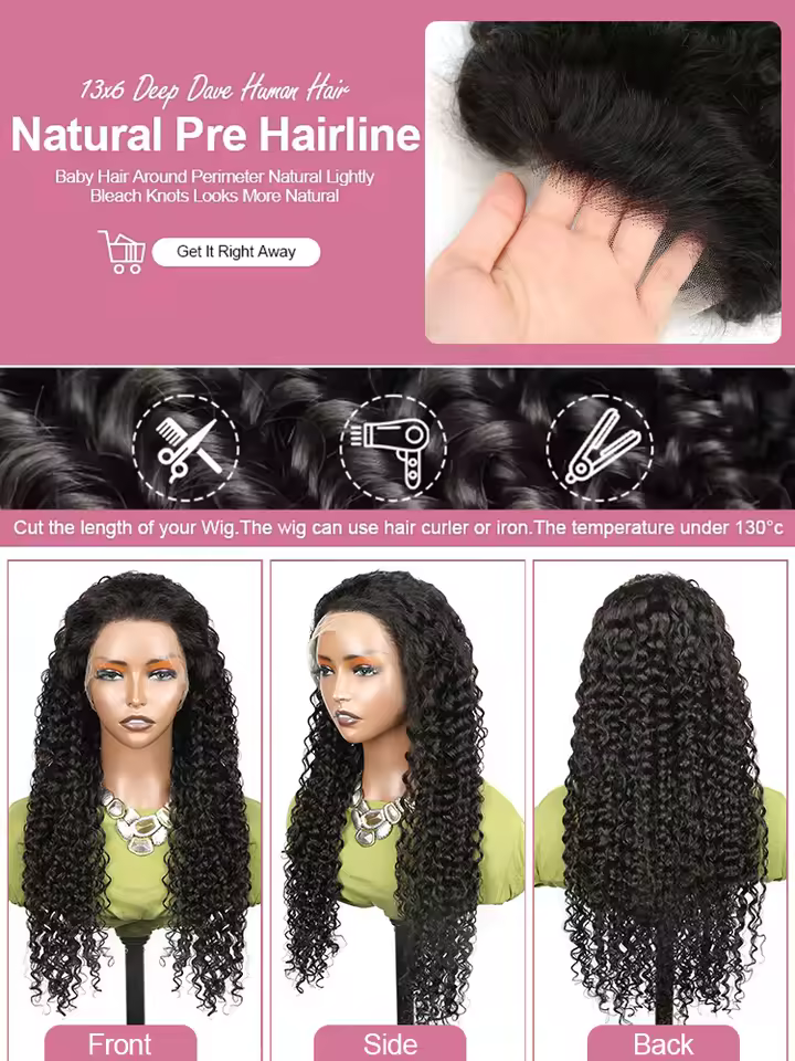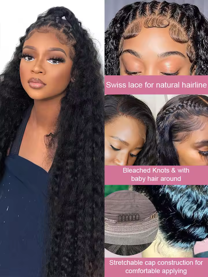 Product Note: The 40–50 Inch Water Wave Curly HD Lace Wig is crafted from 100% human hair with a deep wave texture, featuring 13x4, 13x6, and 7x5 glueless options. With 300% density, it delivers maximum volume, a natural hairline, and versatile styling for women.