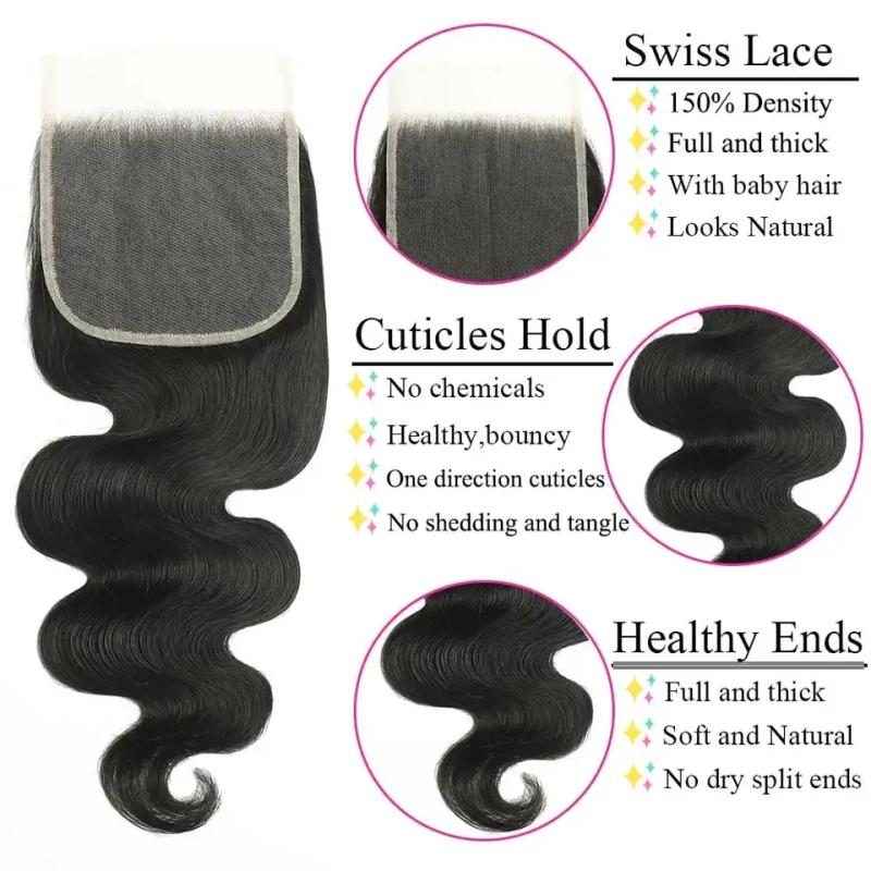 Product Note: Upgrade your hairstyle with our premium 4x4, 5x5, and 6x6 Body Wave Human Hair Lace Closures. Made from 100% Brazilian virgin