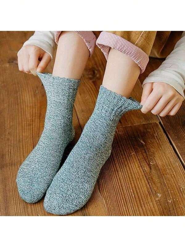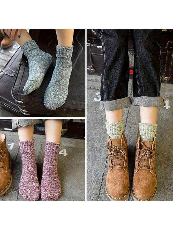 5 Pairs,Women's Spring And Winter Warm Short Tube Socks, Women's Thick Knitted Warm And Comfortable Calf Socks, Retro Style Socks, Suitable For Outdoor Travel Wear